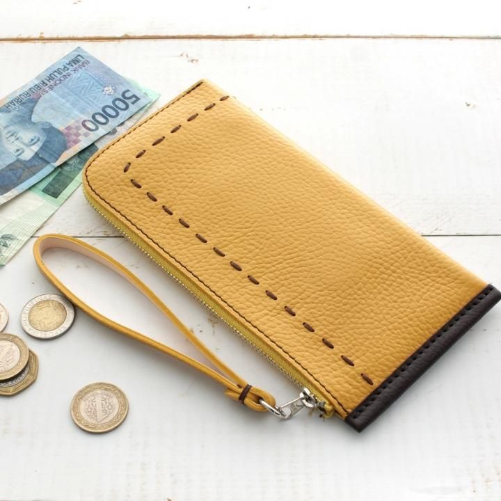 こんにちは!レザーウォレット(長財布/イエロー)を購入して数か月、だんだん皮が柔らかく馴染んできました。銀行の通帳もピッタリ収まるところもとっても便利です。このお財布は札入れとして使っているので、ゆくゆくは小銭用に同じ色のレザーコインパースが欲しいなあと思っています。