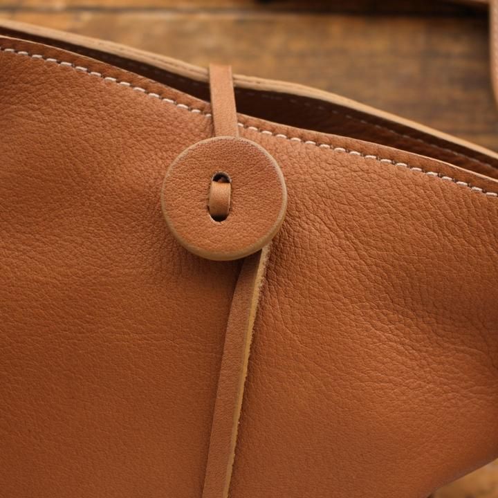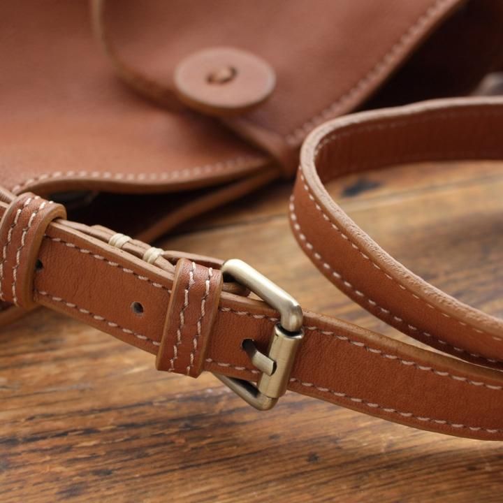 軽くてしっとりと手触りのいいナチュラルレザーのポシェットは、本革なのに軽くてやわらか。