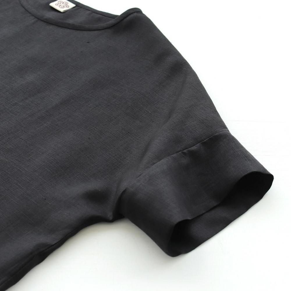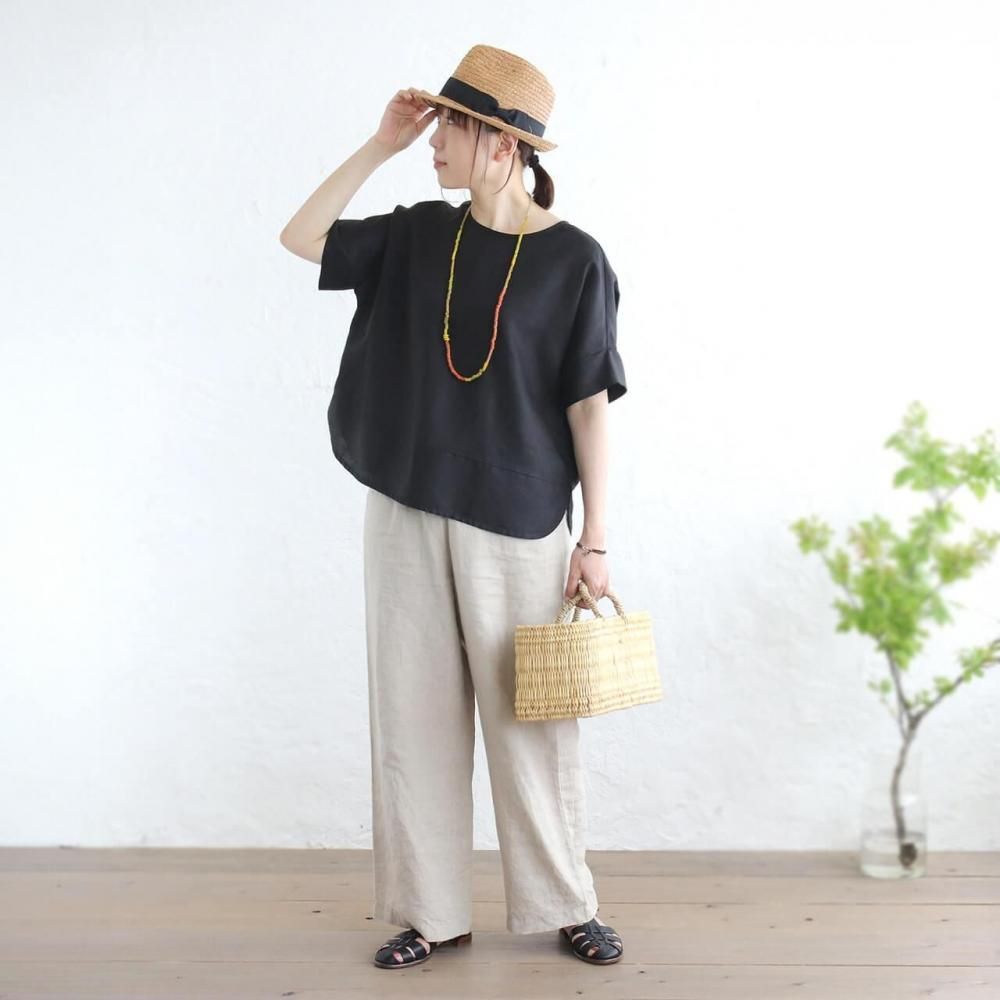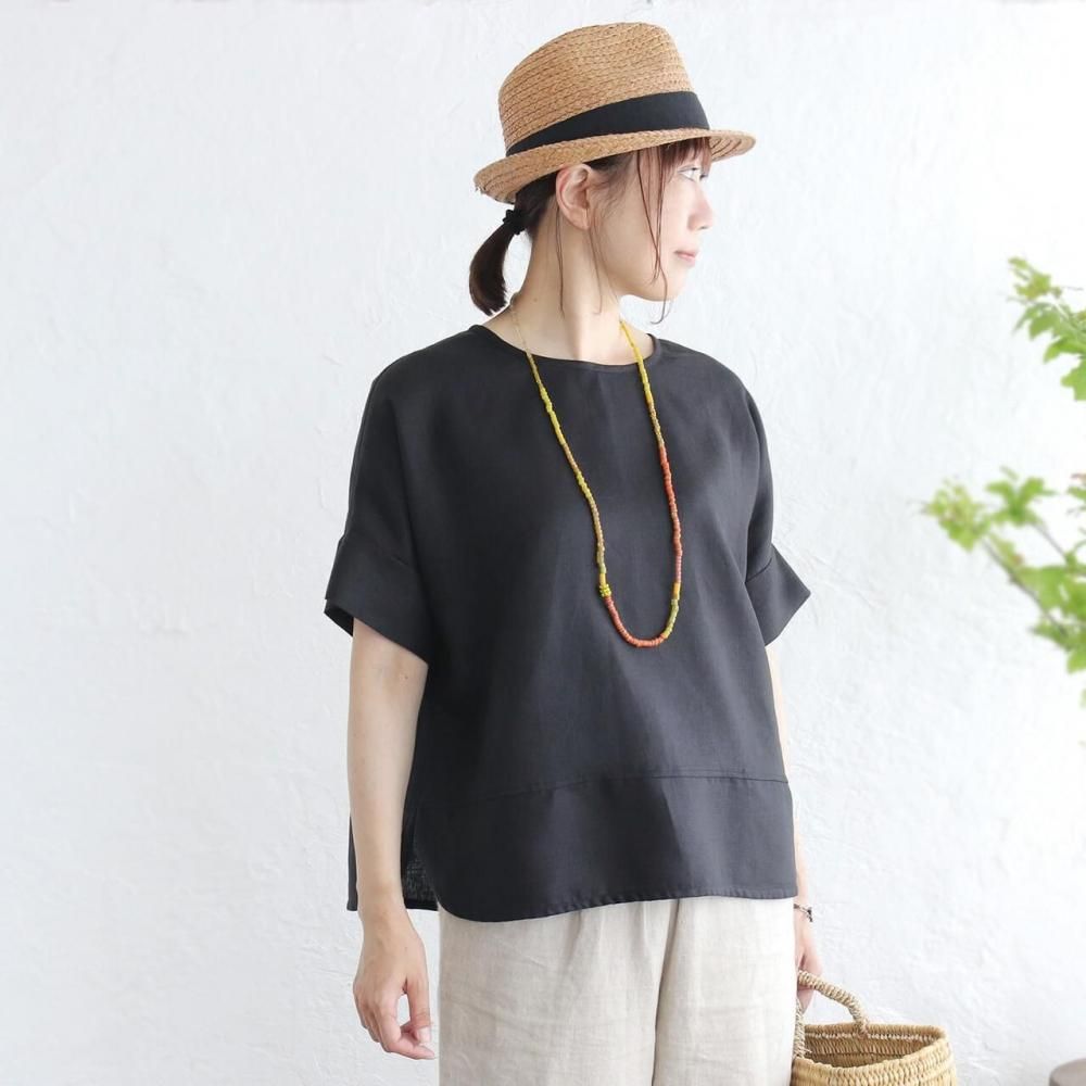 リネンワイドプルオーバーブラウス(ブラック)TP34