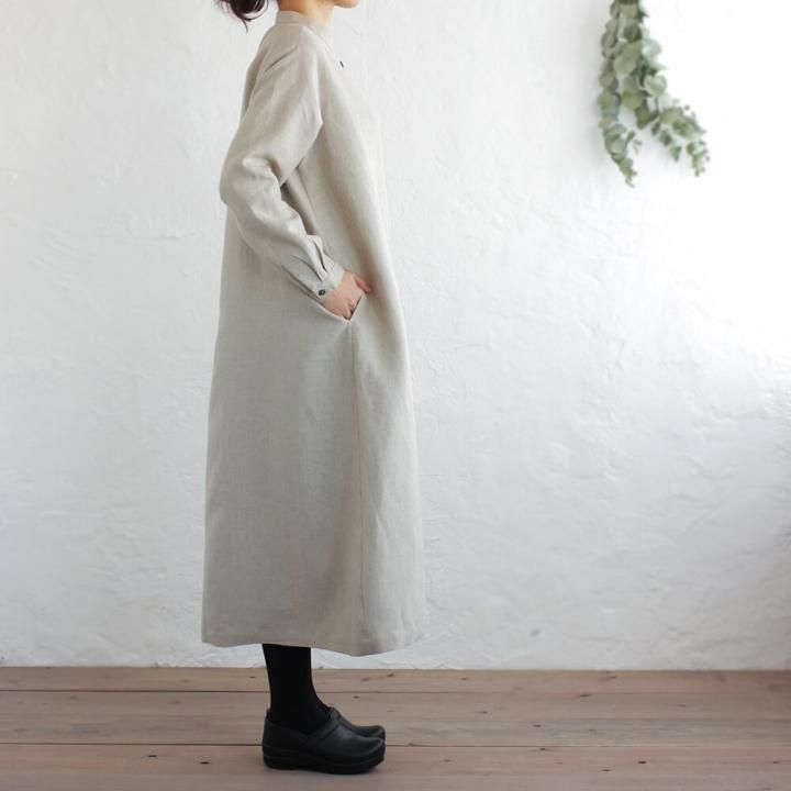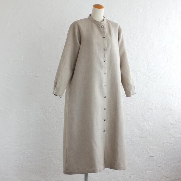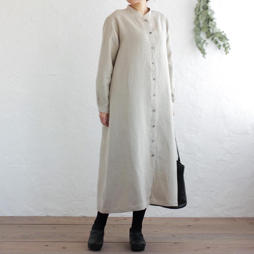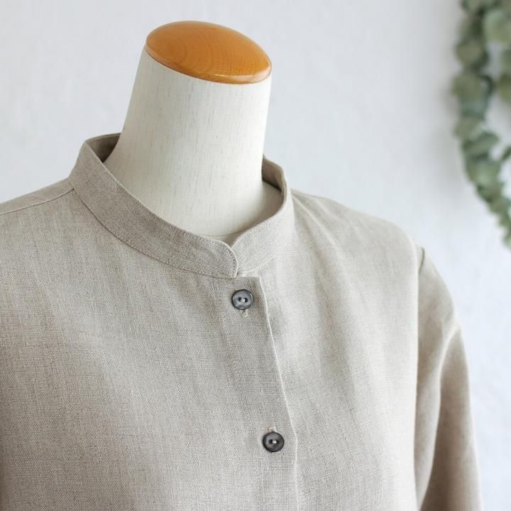 リネン スタンドカラー シャツワンピース 2way 羽織 (ナチュラルベージュ)
