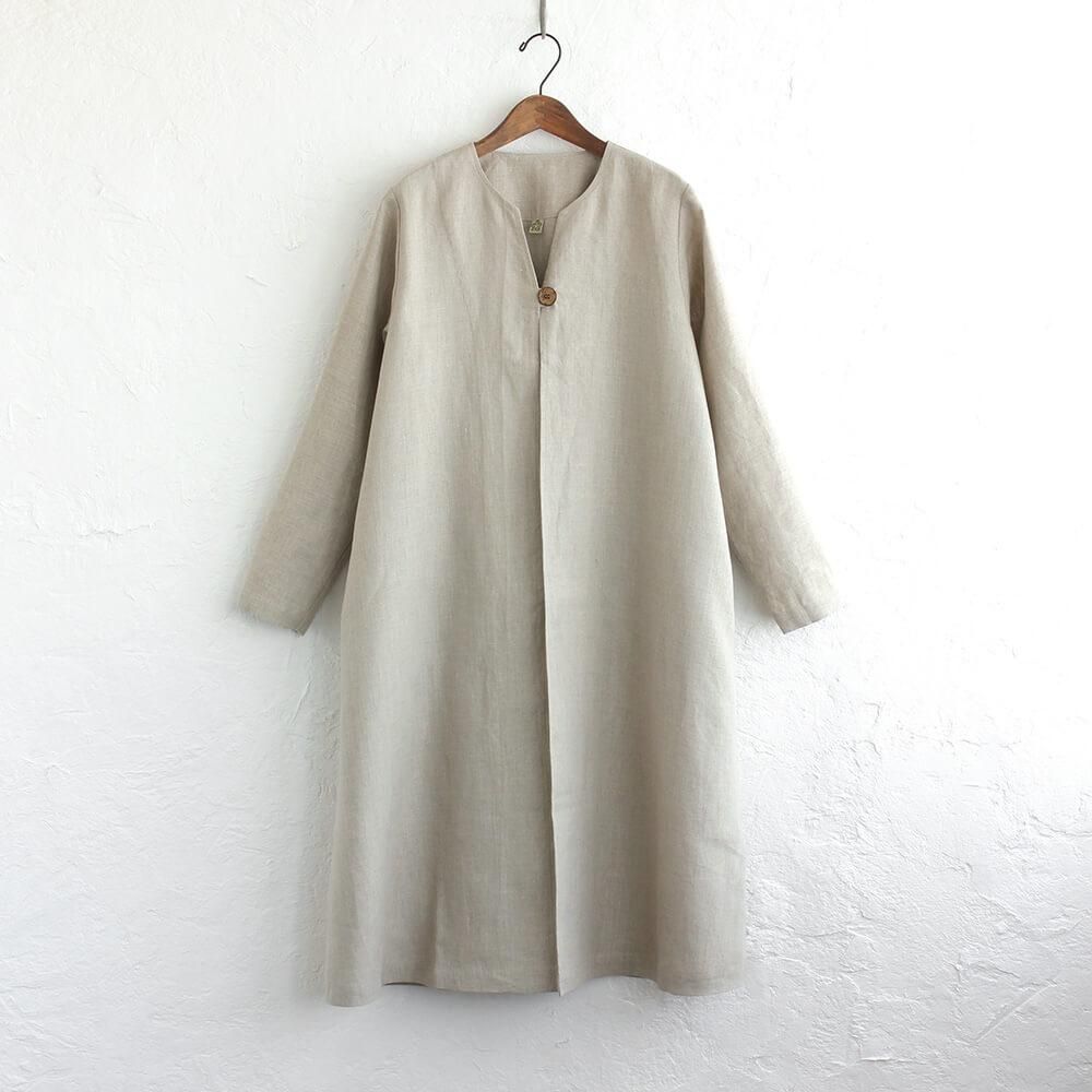 ロングシーズン活躍してくれる一枚仕立てのリネンのコートは、軽い着心地で気軽に羽織れるのが魅力。