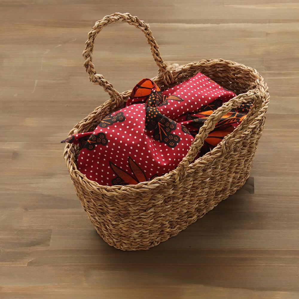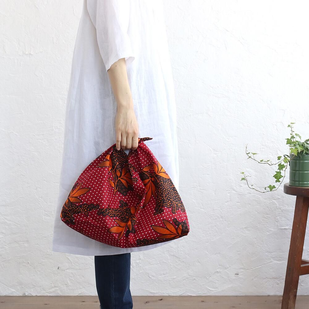 alinのあづま袋 M 50cm かごバッグに あずま袋 マチ付き アフリカンバティック (水玉/レッド)