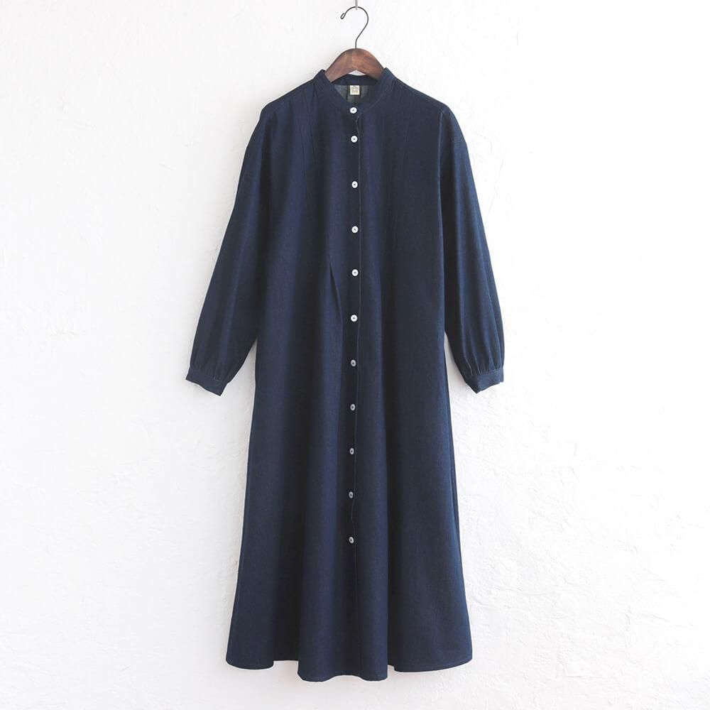 【送料無料】コットンデニム2way タックワンピース (ネイビー)