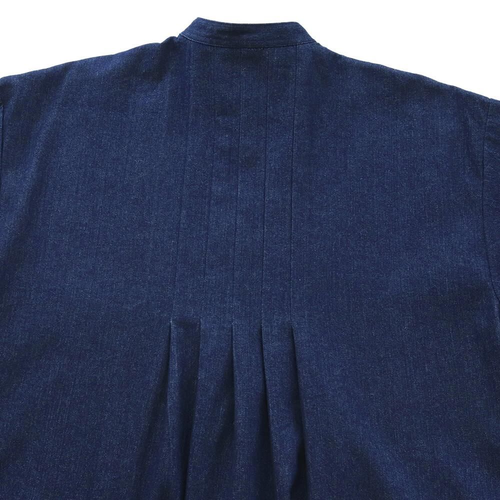 素材 7ozコットンデニム、貝ボタン(やや薄手、透け感はほぼ無し)