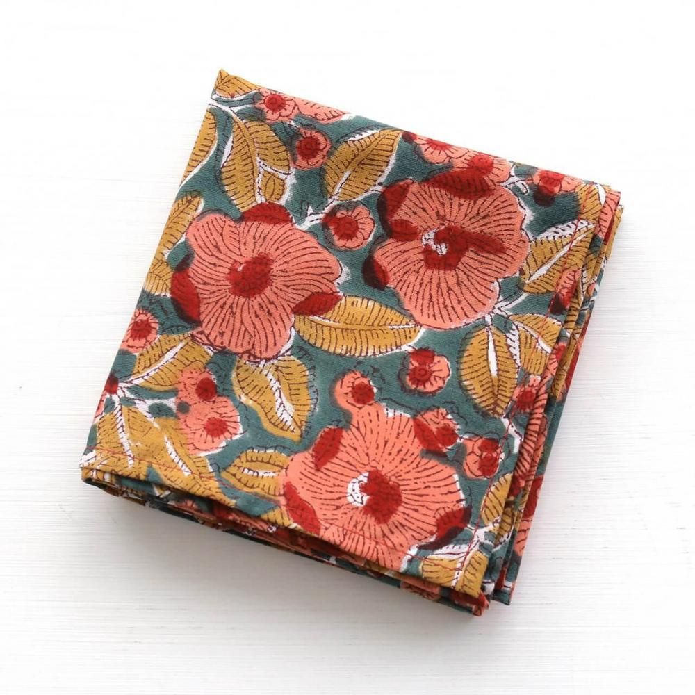 木版染め ブロックプリント 大判ハンカチ(アネモネ/グリーン)04