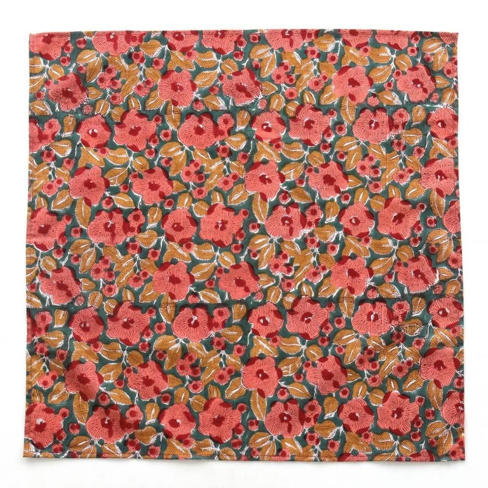 一回り大きな「バンダナサイズ」。インドの伝統技術「木版染め(ブロックプリント)」の布を使って、ハンカチを作りました。