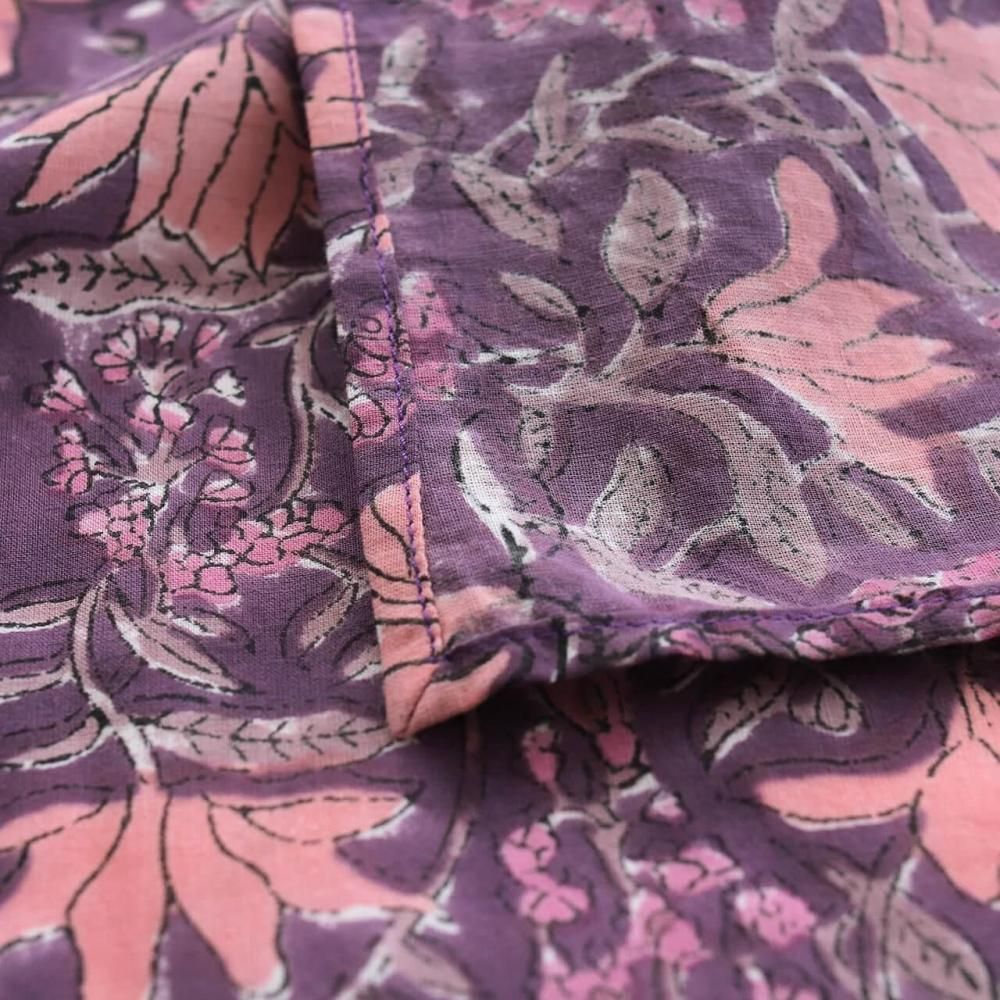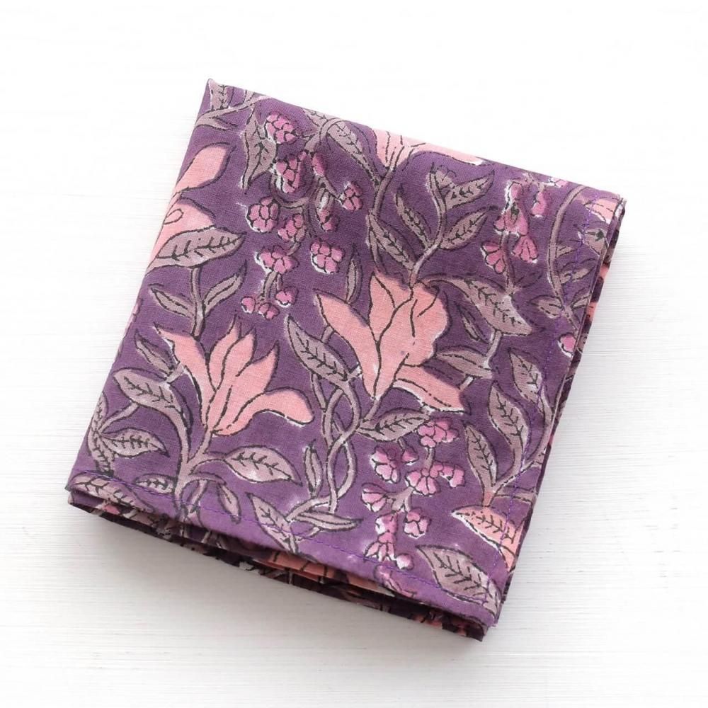 木版染め ブロックプリント 大判ハンカチ(オータムンガーデン/モーブ)07