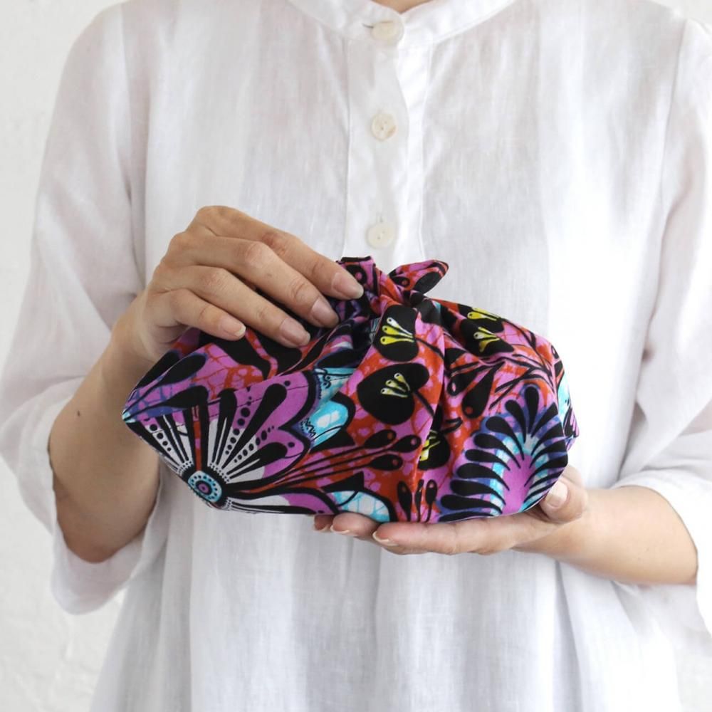 alinのあづま袋 S お弁当包み マチ付き アフリカンバティック(エスニックボタニカル)