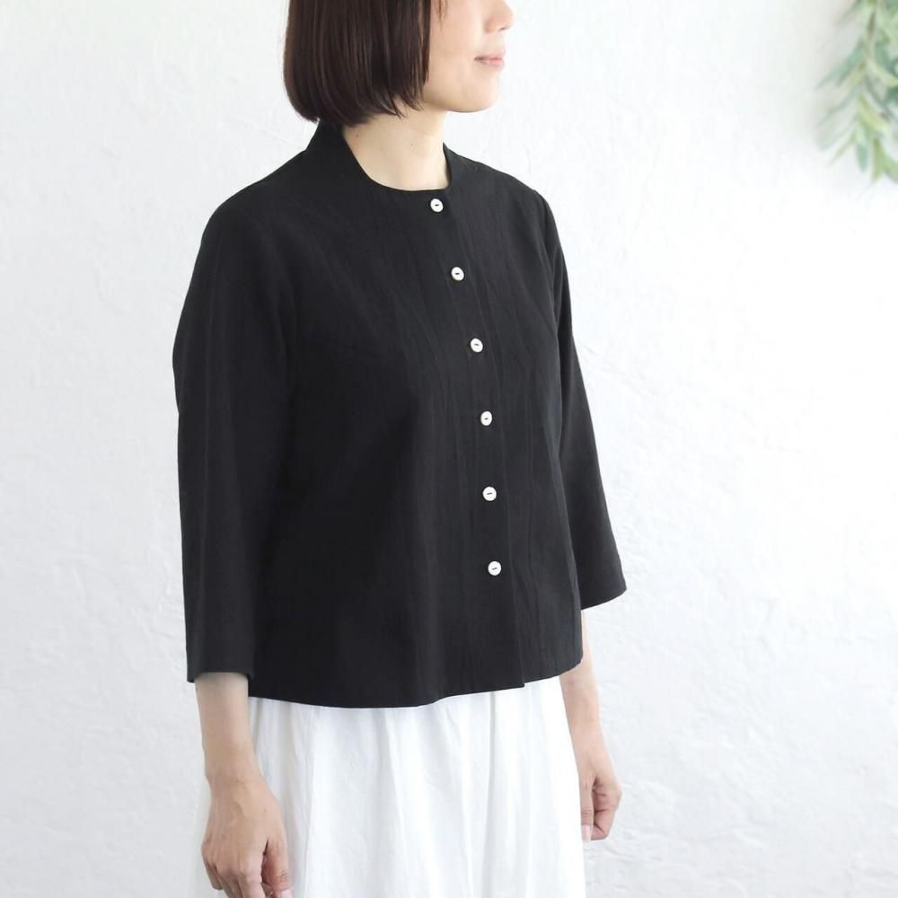 【送料無料】桐七炊きコットンリネン はおりジャケット(ブラック)CO12