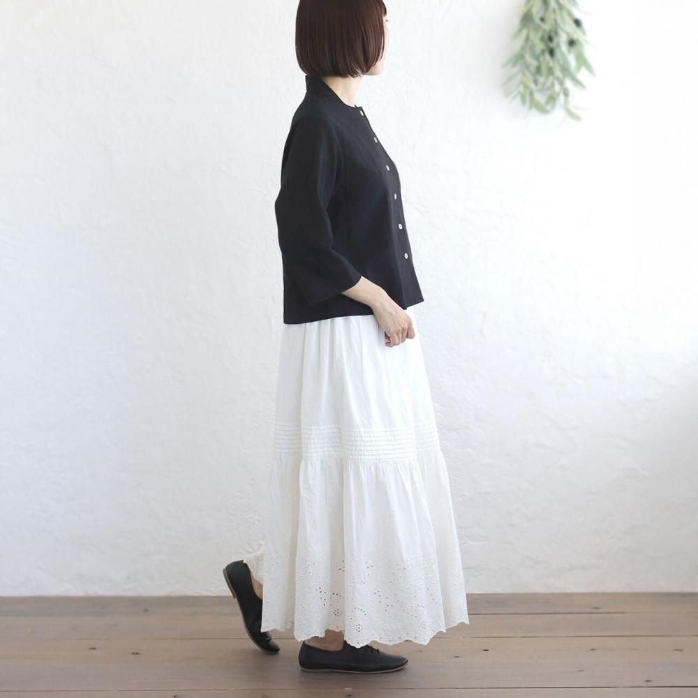 春から秋にかけて長く活躍し、軽やかで上品な、大人の女性に似合う一枚です。