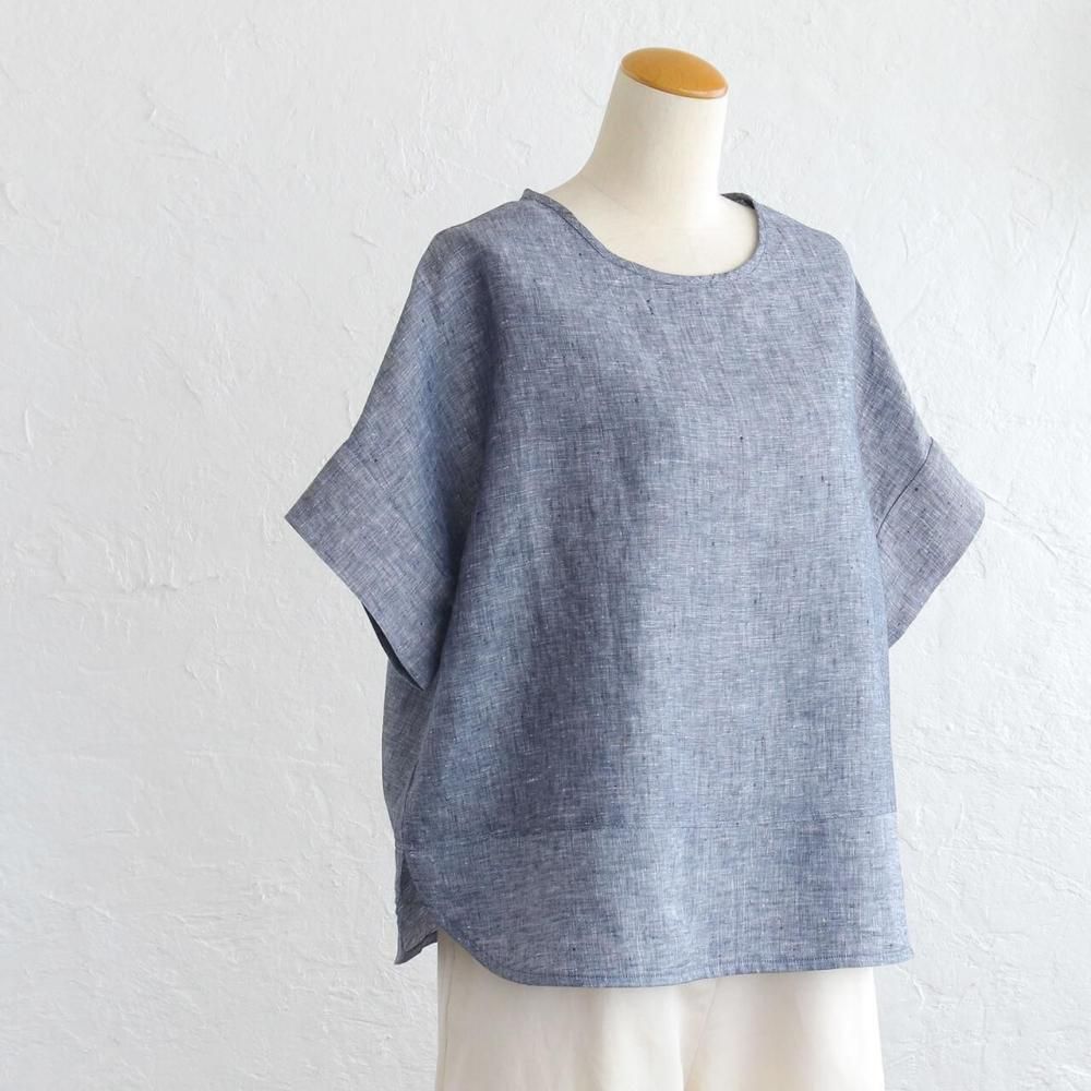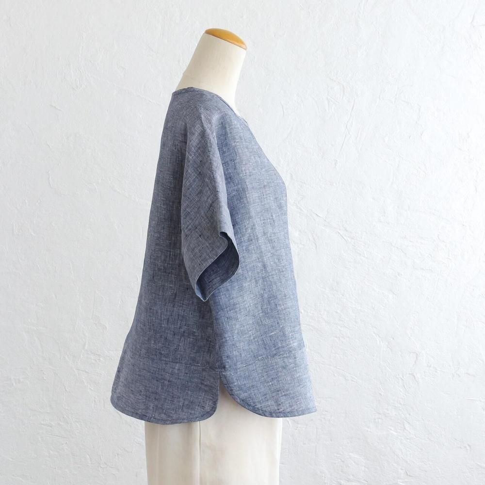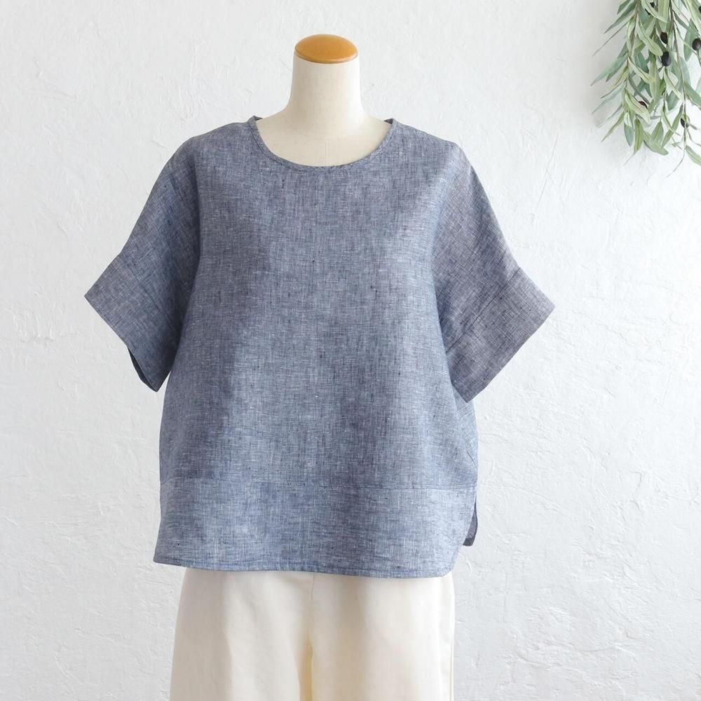 リネンワイドプルオーバーブラウス(シャンブレーネイビー)TP34