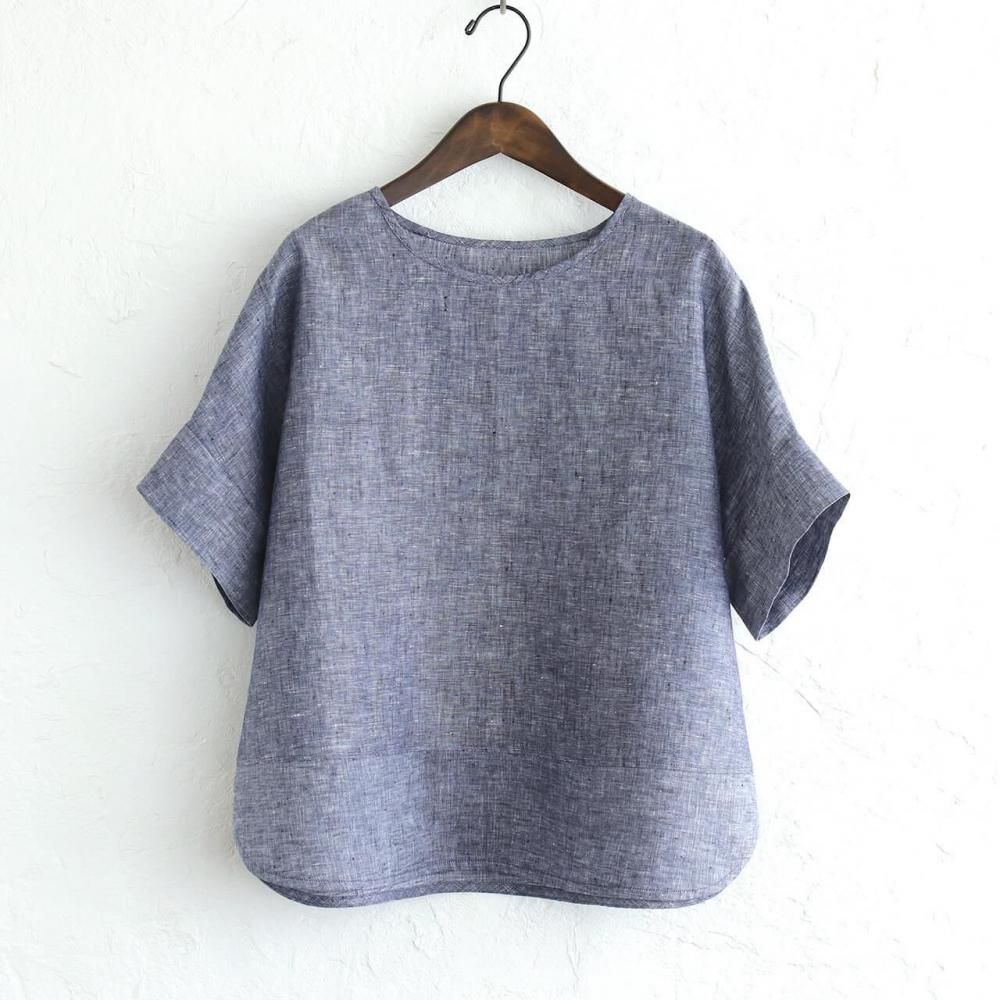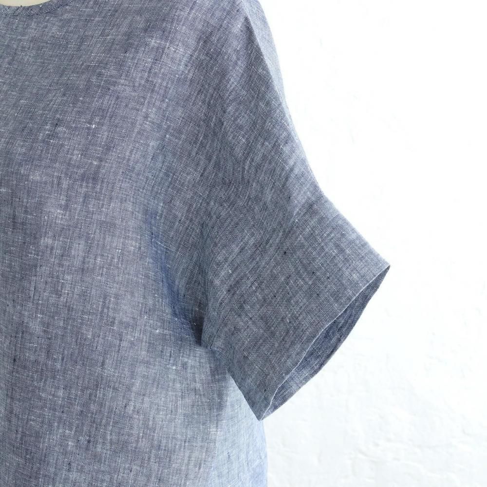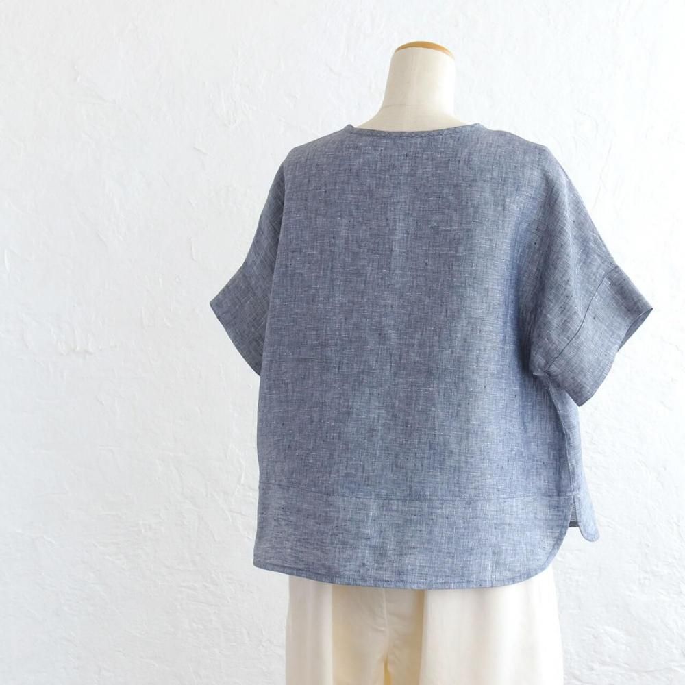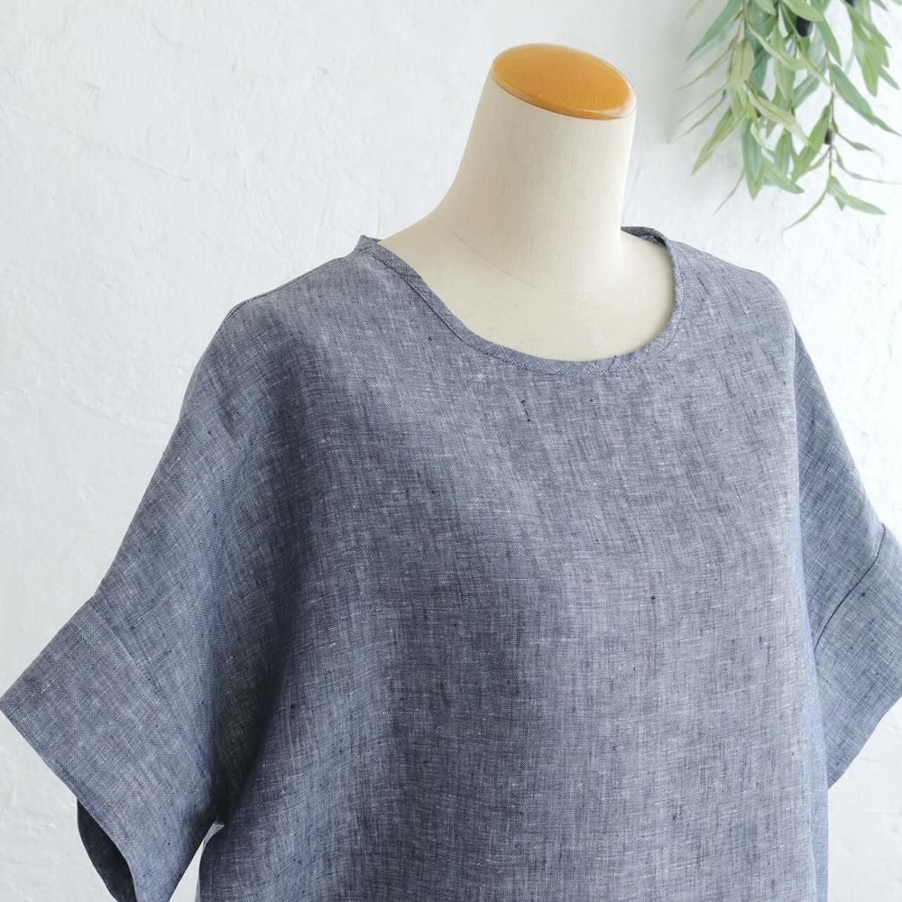 リネンワイドプルオーバーブラウス(シャンブレーネイビー)TP34