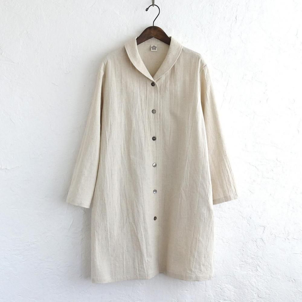 【送料無料】桐七炊きコットンリネン ショールカラー ジャケットコート (生成り)CO08