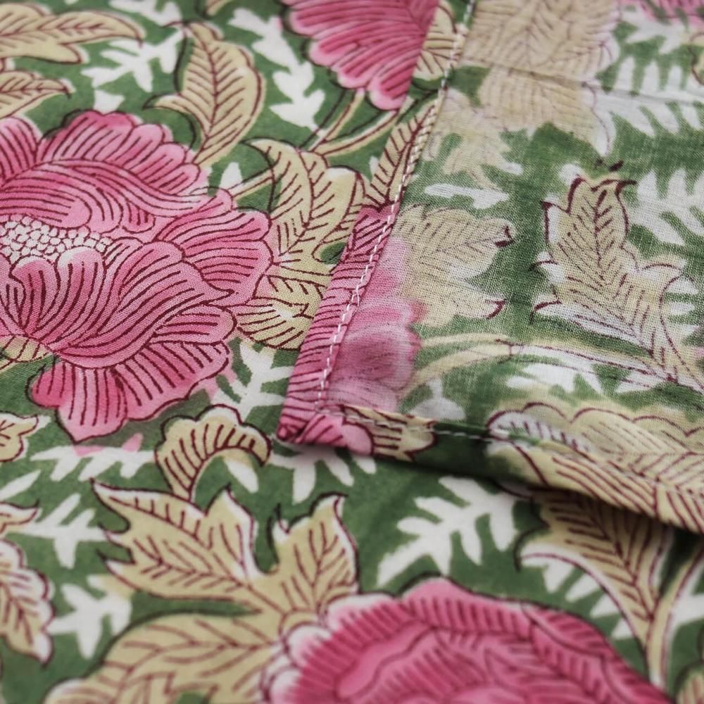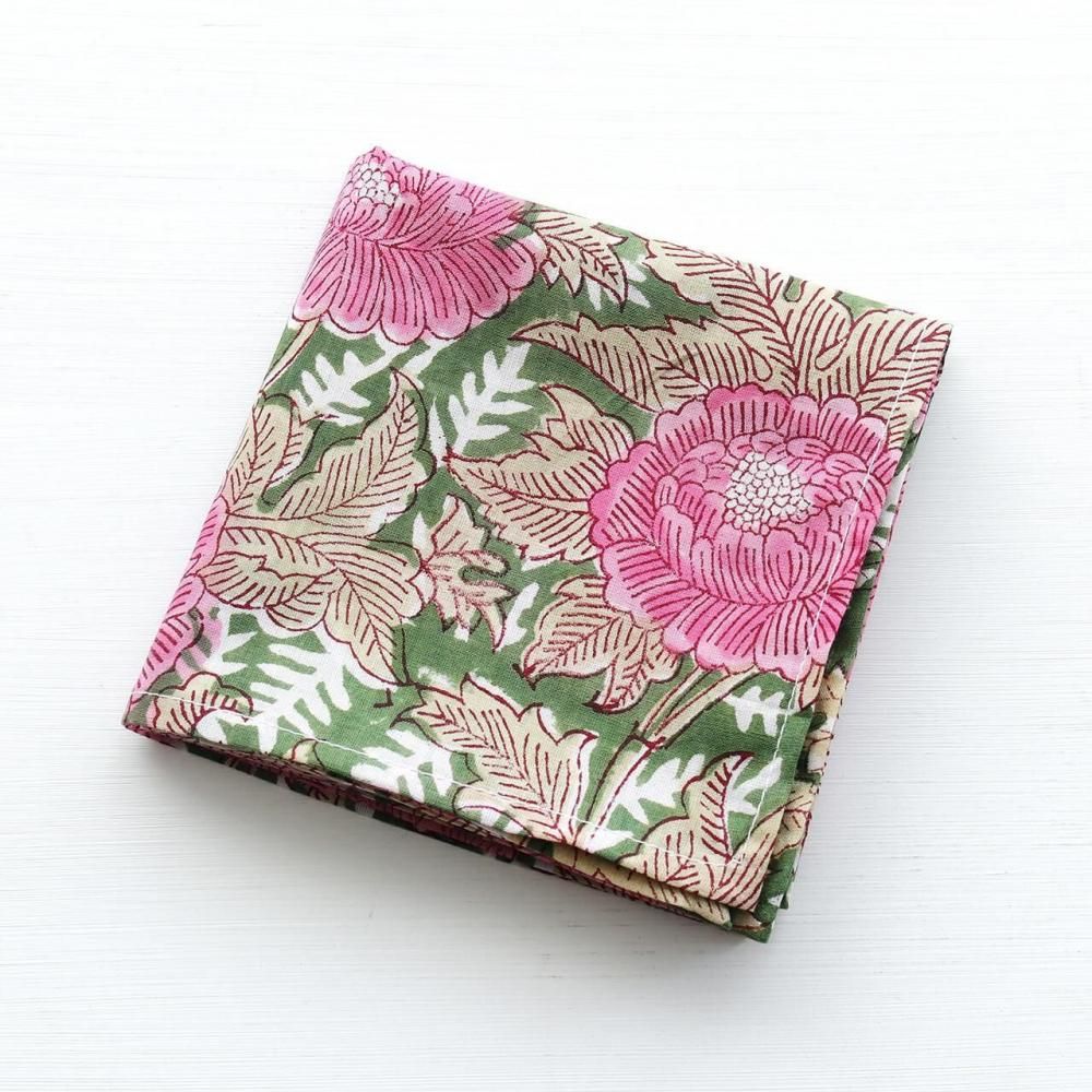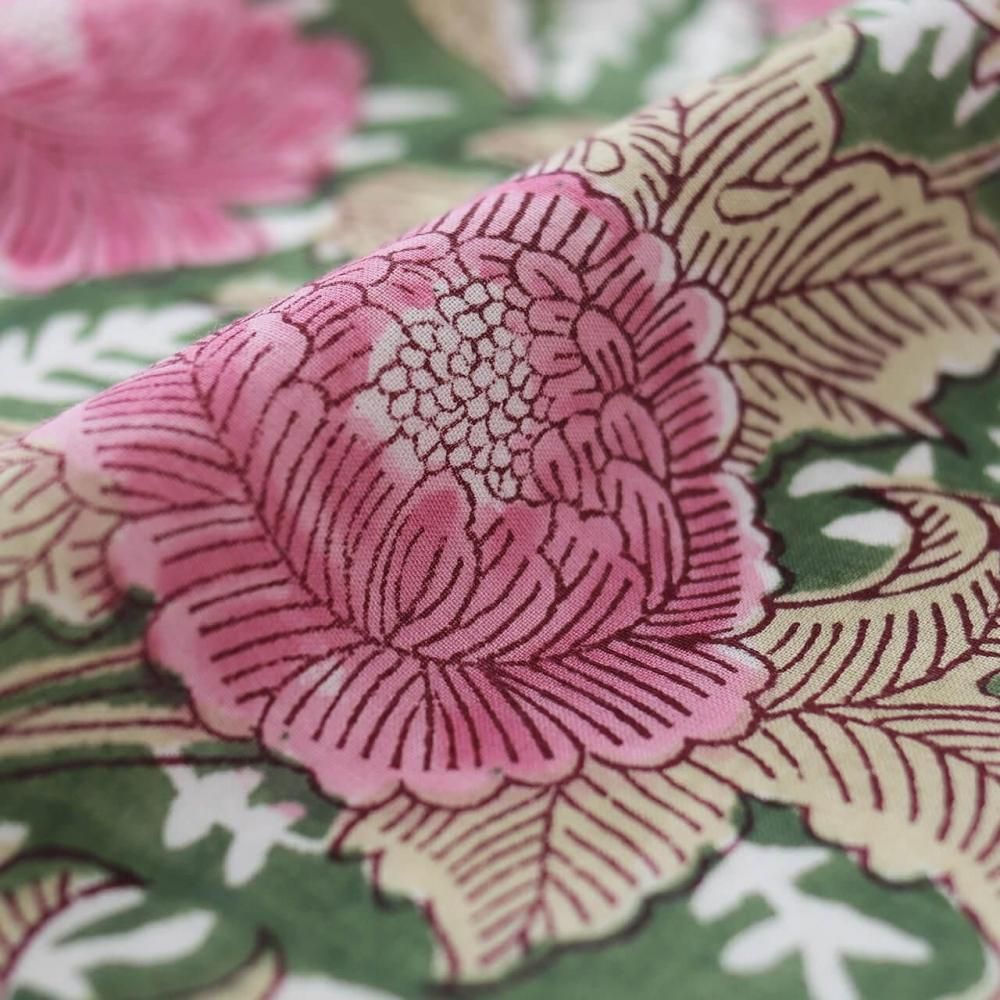 木版染め ブロックプリント 大判ハンカチ(ピオニー/グリーン)16