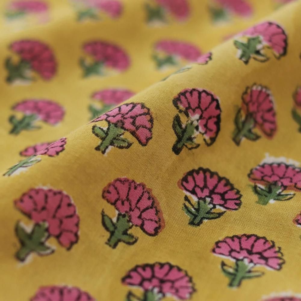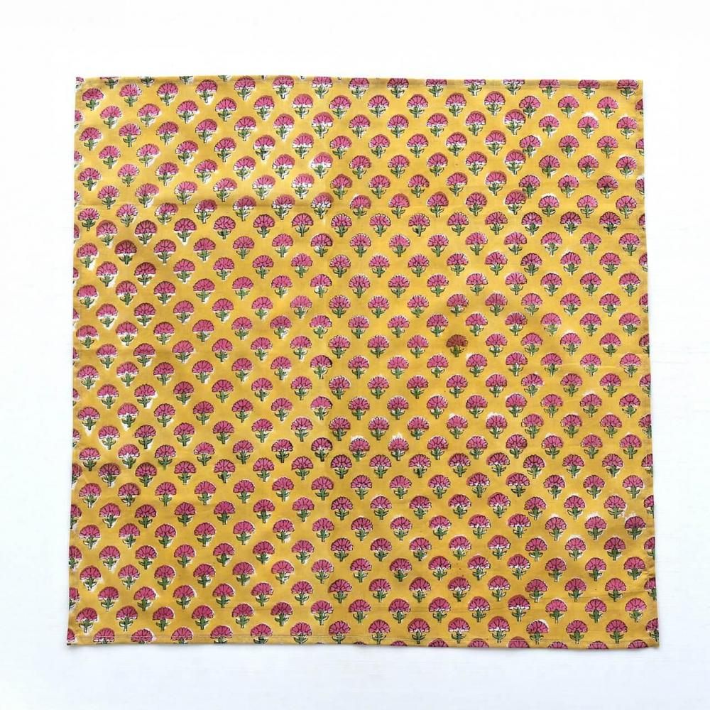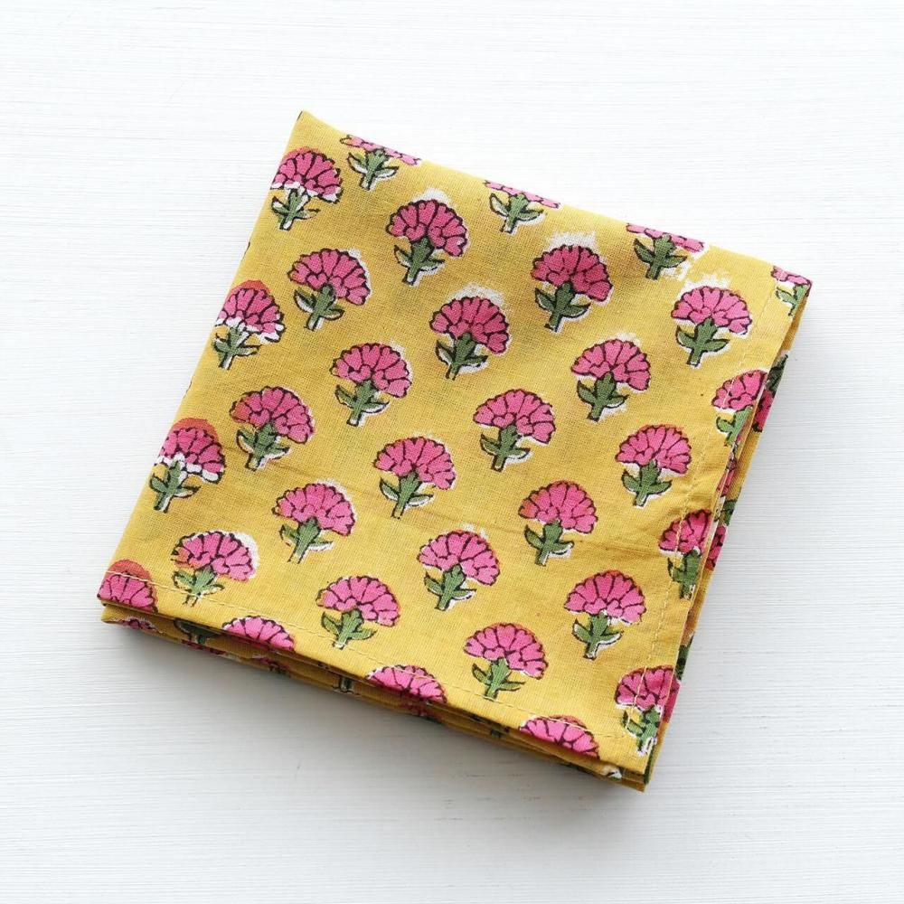 木版染め ブロックプリント 大判ハンカチ(カーネーション/イエロー)17